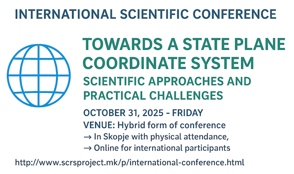 The primary objective of the conference was to present the key results of the national project SCRS Project (National Scientific Project: State Plane Coordinate Reference System - Republic of North Macedonia), engage international experts, share experiences, discuss methodologies and findings, and explore the future implementation of the proposed coordinate reference system (CRS) for North Macedonia.