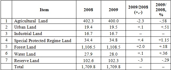 Table 1. Russian Federation Land, 2008-2009, million hectares