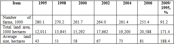 The average size of agricultural land occupied by private farm has been increased due to land consolidation. It was estimated 81 hectares in 2006(see Table 7).